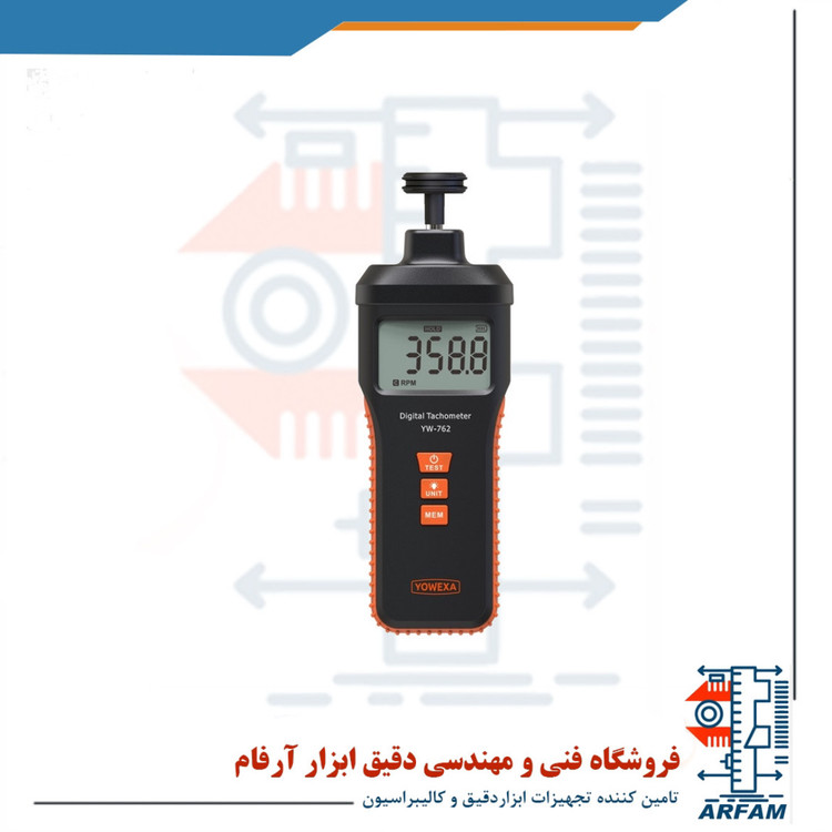دورسنج لیزری مدل YW-762F محصول با کیفیت از کمپانی یووکسا چین میباشد.تاکومتر نوری یووکسا برای اندازه گیری میزان دور الکتروموتور می باشد. در مکان هایی که با سرعت بالا مواجه هستیم و یا مواردی که نمی توان با شی تماس برقرار کرد از دورسنج های غیر تماسی استفاده می شود. از دورسنج ها/تاکومترها برای اندازه گیری سرعت موتورهای دوار، فن های متحرک، اندازه گیری سرعت خطوط طولی نظیر نوار نقاله و … استفاده می شود رنج اندازه گیری از 5 تا 99.999 دور بر دقیقه و رزولوشن 0.1 دور بر دقیقه و صفحه نمایشگر 5 دیجیت LCD دار از جمله خصوصیات این مدل از یووکسا میباشد.