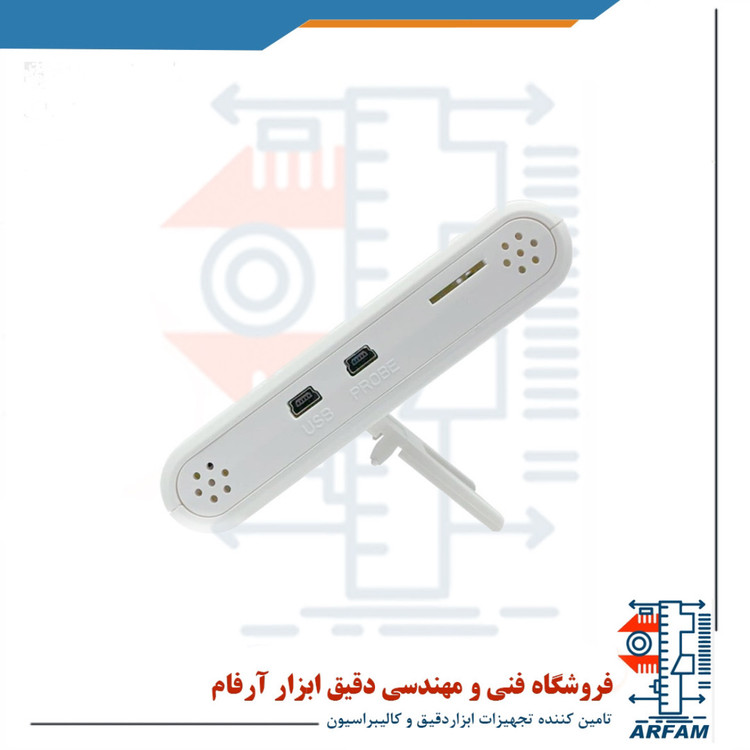 این دستگاه در کانال دما دو واحد درجه سانتیگراد و درجه فارنهایت پشتیبانی می کند. رنج اندازه گیری این دستگاه بین 30- تا 70 درجه سانتیگراد می باشد. اندازه گیری داده های دمایی توسط این دستگاه با دقت ±0/5 درجه سانتیگراد برای رنج 0 تا 60 درجه سانتیگراد و ±0/8 درجه سانتیگراد برای رنج های دیگر و وضوح 0/1 درجه سانتیگراد (یا 0/2 درجه فارنهایت) انجام می شود.