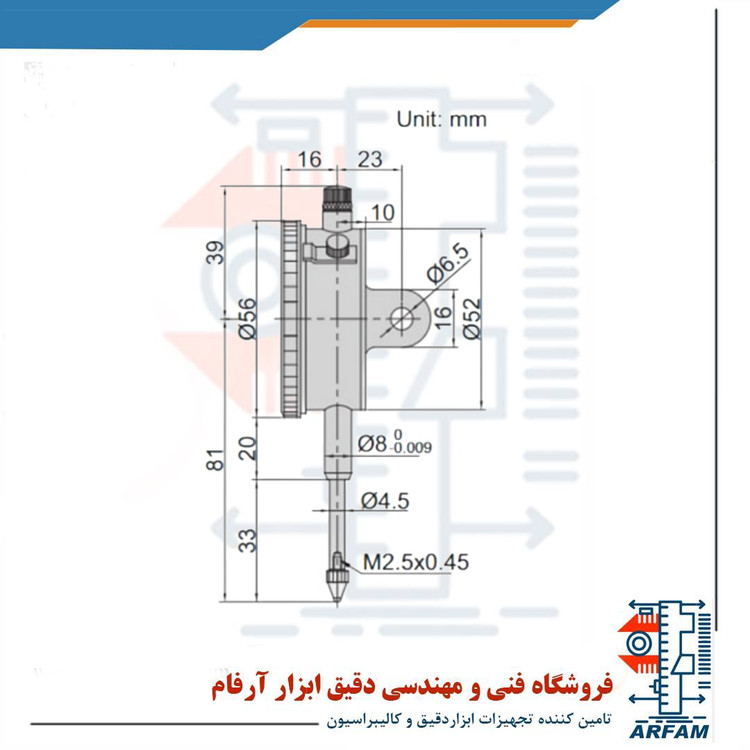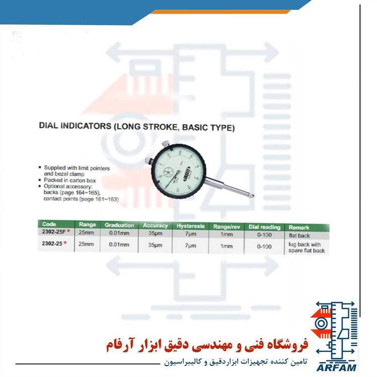 محدوده اندازهگیری این اندیکاتور از 0 تا 25 میلیمتر بوده و تقسیم بندی اندازه آن به اندازه 0.01 میلیمتر است. این معیارهای دقت و تفکیک بالا به کاربر امکان اندازهگیری دقیق ابعاد را میدهند. دقت ابزار نیز با مقدار 0.035 میلیمتر بسیار بالا و قابل اعتماد است.