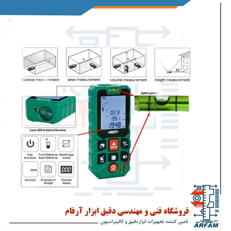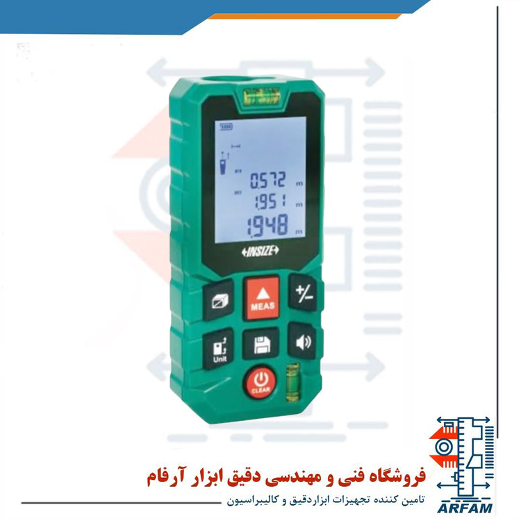 متر لیزری 70 متری اینسایز مدل 70-9561 B، ابزاری حرفهای است که مخصوص مهندسان و معماران طراحی شده است. این متر لیزری با دامنه اندازهگیری از 0.2 متر تا 70 متر، دقت بینظیری را در هر اندازهگیری ارائه میدهد. با نمایشگر بزرگ و نور پسزمینه، خواندن مقادیر در شرایط مختلف محیطی بسیار آسان است. رزولوشن 1 میکرون متر صفحه نمایش و دقت اندازهگیری بر اساس فرمول دقیق، امکان اندازهگیری با کمترین خطا را فراهم میکند. این دستگاه با استفاده از دو باتری AAA تغذیه میشود و از عمر طولانی باتری برخوردار است.