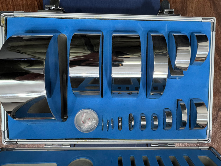 وزنه کالیبراسیون دیسکی شیاردار ( چاک دار) 100mg to 5kg استیل یک مجموعه وزنه استاندارد و کامل کلاس F1 می باشد . این سری وزنه دیسکی استیل دارای 24 قطعه وزنه می باشد که جهت کالیبراسیون و یا کنترل میانی ترازو های حساس مورد استفاده قرار میگیرد . این سری وزنه شیار دار استیل دارای یک جعبه الومینیومی مقاوم می باشد