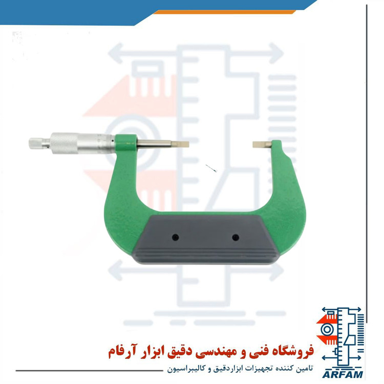 میکرومتر اینسایز مناسب سنجش قطر و شیار در کلید، شفت، قفل، یراق آلات و ... بیان شده است. این ابزار اندازهگیری دقیق و لیزری دارای متوقف کننده هرزگرد به همراه آچار و میله تست فلزی و دو نوک کارگیر تخت با محور فولادی ضد زنگ میباشد. طراحی نوکهای Type A با طول نوک 6.5 و پهنای 6 میلیمتر از مزیت این وسیله به شمار می