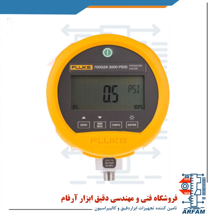 ساخت کمپانی قدرتمند فلوک آمریکا Fluke بود که قادر به اندازه گیری فشار از 0.83- تا 200 بار و یا از 12- تا 300 پی اس آی رو می باشد .