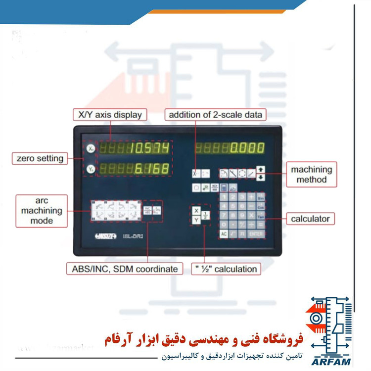 شمارشگر خط کش دیجیتال دو محور اینسایز دارای قابلیت محاسبه خودکار 1/2 اندازهها، مختصاتیابی و نمایش خطای اندازه است. این ویژگیها در افزایش دقت و کنترل بیشتر در فرآیندهای صنعتی مؤثر هستند.