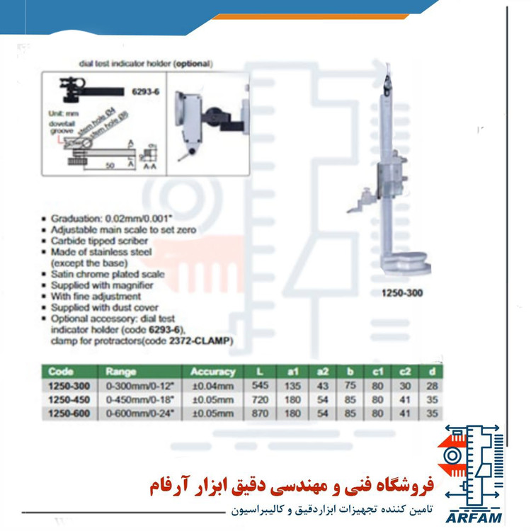 کولیس پایه دار ساده اینسایز 45 سانتی متر مدل 450-1250