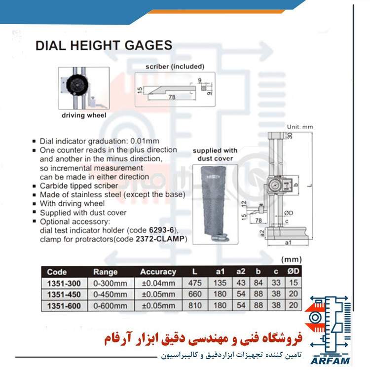 کولیس پایه دار ساعتی اینسایز 60 سانتی متر مدل 600-1351