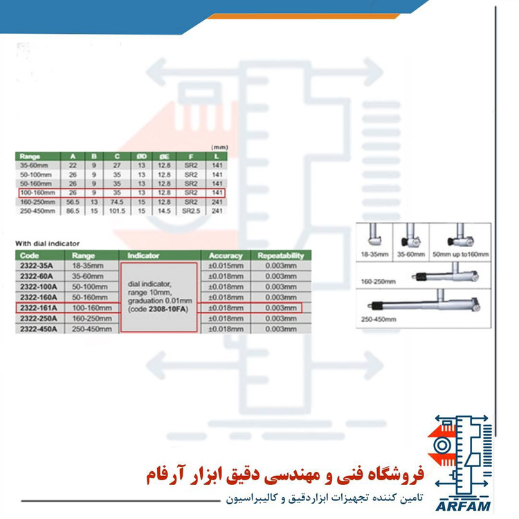 توضیحات تکمیلی بور گیج 160 – 100 میلی متر اینسایز مدل 161A-2322