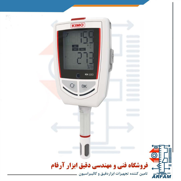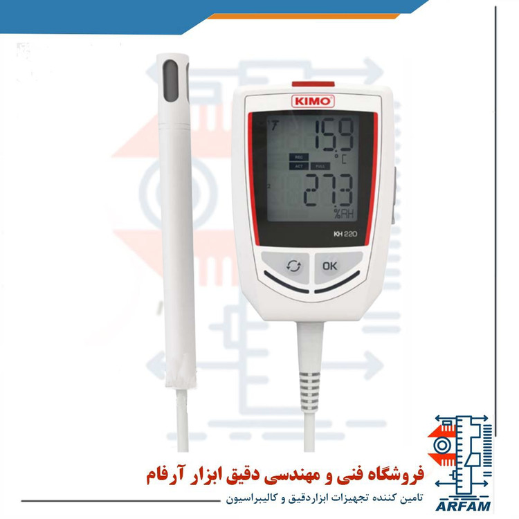 دیتالاگر دما و رطوبت و فشار آب مدل KIMO KH-220ساخت کمپانی کیمو فرانسه دارای یک سال گارانتی و پنج سال خدمات پس از فروش می باشد.این محصول را می توانید از ابزار آرفام تهیه نمائید.