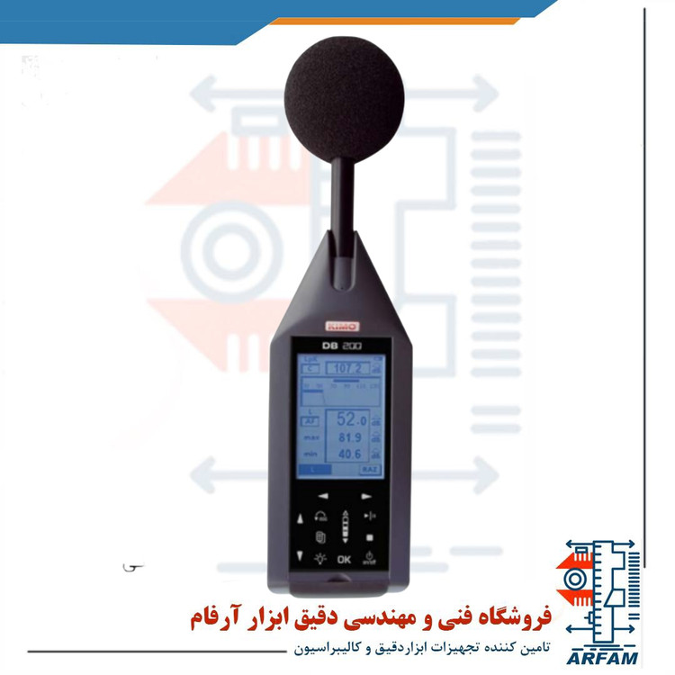 دستگاه سنجش صدای کیمو KIMO DB200 دارای یک میکروفون الکتریتی ICP با حساسیت mV/Pa 15 است و اندازهگیری را به صورت Free-field انجام میدهد. همچنین دارای 3 فرکانس وزنی A˛ C و Z است. بازه اندازهگیری در فرکانس وزنی A برابر با 130-30 دبل˛ در فرکانس وزنی C برابر با 130-35 دبل و در فرکانس وزنی C برابر با 130-35 دبل میباشد. بازه اندازهگیری کانال Peak نیز از 83 دبل تا 133 دبل متغیر است. تراز اندازهگیری در این ابزار شامل Fast˛ Slow˛ Impulse و peak بوده و مدت زمان logging برای سطح Leq و LP از 1 تا 60 ثانیه است