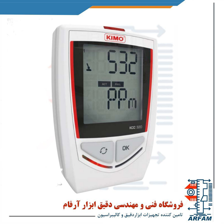 دستگاه سنجش رطوبت و فشار کیمو KIMO KCC 320 مناسب برای سنجش دما˛ رطوبت˛ فشار هوا و CO2 میباشد و تا 2 میلیون داده را هم میتواند در حافظه ذخیره کند. محدوده اندازهگیری CO2 در این ابزار از 0 تا ppm 5000 و محدوده اندازهگیری فشار اتمسفر از 800 تا 1100 هکتوپاسکال است. این دستگاه رطوبت را هم از 0 تا RH% 100 و دما را از 20- تا 70 درجه سانتیگراد اندازه میگیرد. این ابزار قابلیت اتصال به گوشیهای هوشمند اندروید و IOS را داشته و از دارای نرمافزار kilgo Lite برای پیکربندی و پردازش دادهها استفاده میکند. نمایشگر LCD این ابزار به صورت دو خطی است و در هنگام اتصال به کامپیوتر دادهها را با سرعت point/s 18000 دانلود میکند