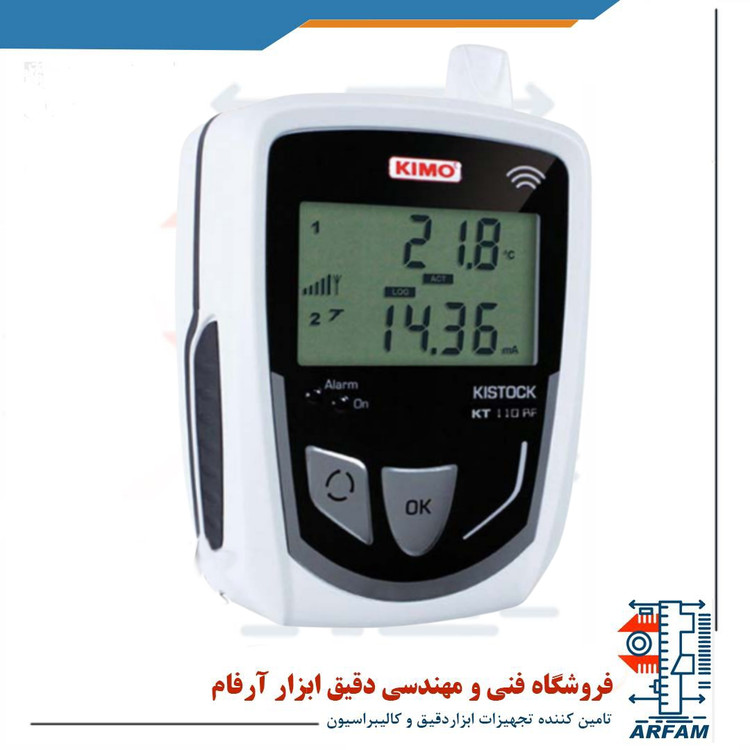 دیتالاگر وایرلس کیمو KIMO KT 110-RF قابلیت اندازهگیری دما˛ جریان˛ ولتاژ و پالس را دارد و دارای درجه ایمنی IP65 است. نمایشگر این ابزار به صورت یک LCD دو خطی است و ابعادی در حدود 28.5*45 میلیمتر دارد. ابعاد خود این ابزار نیز برابر با 39.874.4*116.5 میلیمتر و وزن آن 160 گرم است. ولتاژ موردنیاز این ابزار از یک باتری لیتیومی 3.6 ولتی تامین میشود و برای مصرف بهینه باتری میتوان قابلیت خاموشی خودکار را در این ابزار فعال یا غیر فعال کرد. باتری این دیتالاگر به طور متوسط بین 1.5 تا 3 سال میتواند کار کند. تعداد 16000 نقطه اندازهگیری نیز در حافظه این ابزار ذخیره میشود و از طریق اتصال به کامپیوتر میتوان به تمام این دادهها دسترسی پیدا کرد. این دیتالاگر دارای دو هشدار تصویری است و دو نقطه آلارم هم میتوان برای آن تنظیم کرد.