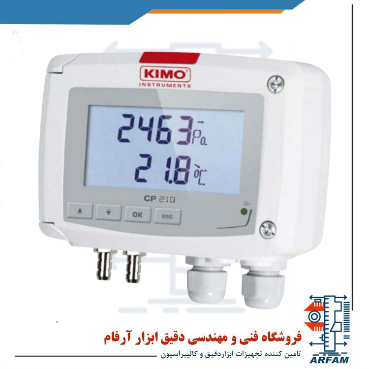 ترانسمیتر فشار تفاضلی و دما کیمو KIMO CP 210 با توجه شماره پارت مربوطه فشار را از Pa 100/ 100- تا mbar 2000/ 2000- اندازه میگیرد. پارتهای این ابزار شامل CP 211/ 212/ 213/ 214/ 215 میباشد که با توجه به هر پارت سرعت هوا را میتوان بین بازه 3 تا 10 متر بر ثانیه˛ 3 تا 30 متر بر ثانیه و 3 تا 100 متر بر ثانیه اندازه گرفت. در پارتهای CP211˛ CP212 و CP213 نیز میتوان جریان هوا را از 0 تا m3/h 100000 سنجید. این ابزار دارای ورودی Pt100 برای اندازهگیری دما نیز میباشد و از 100- تا 400 درجه سانتیگراد را هم اندازه میگیرد. خروجی این ترانسمیتر به صورت 10/5-0 ولت یا 4/0 تا 20 میلیآمپر میباشد