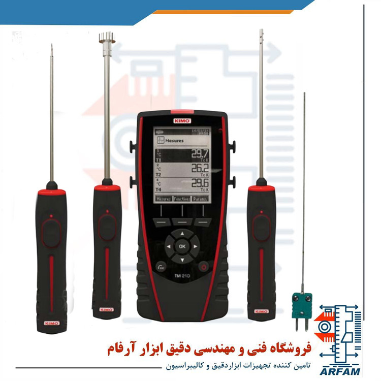 مشصات فنی دیتالاگر دما ترموکوپل با اتصال چهار ترموکوپل برند کیمو KIMO TM210 :