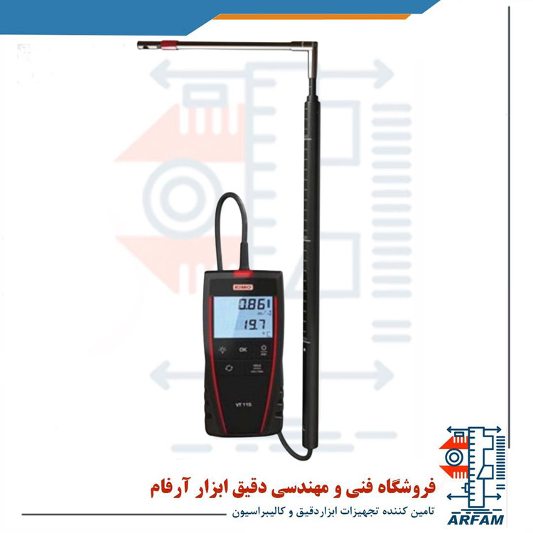 بادسنج و دماسنج هات وایر کیمو KIMO VT 115 سرعت هوا را در بازه 0.15 تا 30 متربرثانیه اندازه میگیرد. دقت اندازهگیری در بازه 0.15 تا 3 متربرثانیه برابر با 0.05± R ±3% و رزولوشن برابر با 0.01 متربرثانیه میباشد. در بازه 3.1 متربرثانیه تا 30 متربرثانیه نیز دقت اندازهگیری برابر با 0.2± R ±3% و رزولوشن اندازهگیری برابر با 0.1 متربرثانیه میباشد. مقدار جریان هوای عبوری نیز از صفر تا m3/h 999 99 با رزولوشن m3/h 1 و دقت (cm2) *surface±0.03R±3% قابل اندازهگیری است.