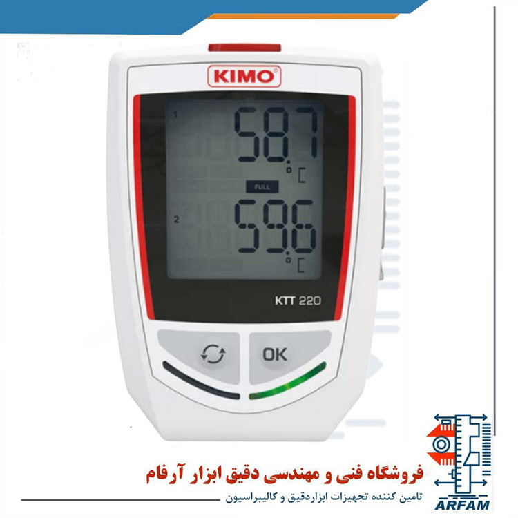 مشخصات فنی دیتالاگر دما نوع K J T N S دو کانال برند کیمو مدل KIMO KTT220 :