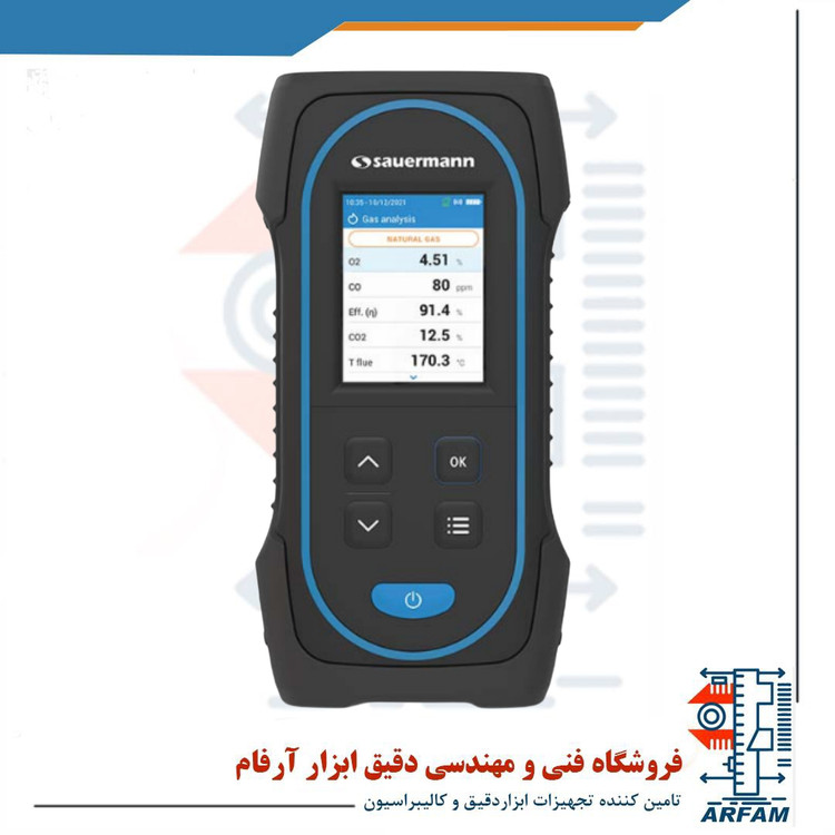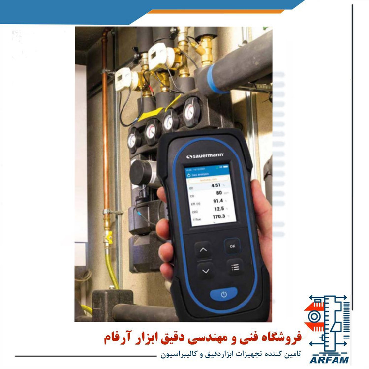 فشار تفاضلی و درفت نیز در بازه 200± میلی بار و inH2O ±80 با رزولوشن 0.01 میلی بار و inH2O 0.001 و دقت mbar ±0.03 rdg±1% و inH2O ±0.012 rdg ±1% اندازهگیری میشود. هوای اضافه تا 999%˛ راندمان تا 100% (Gross/HHV) و تا 125% (Net/LHV) با رزولوشن 1% و 0.1% محاسبه میشود.