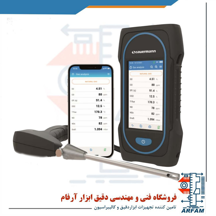 فشار تفاضلی و درفت نیز در بازه 200± میلی بار و inH2O ±80 با رزولوشن 0.01 میلی بار و inH2O 0.001 و دقت mbar ±0.03 rdg±1% و inH2O ±0.012 rdg ±1% اندازهگیری میشود. هوای اضافه تا 999%˛ راندمان تا 100% (Gross/HHV) و 125% (Net/LHV) با رزولوشن 1% و 0.1% اندازهگیری میشود.