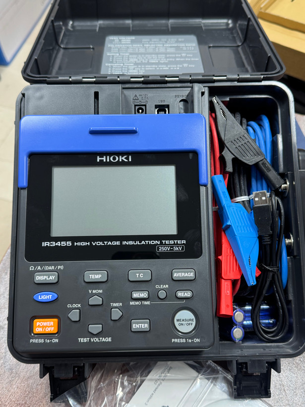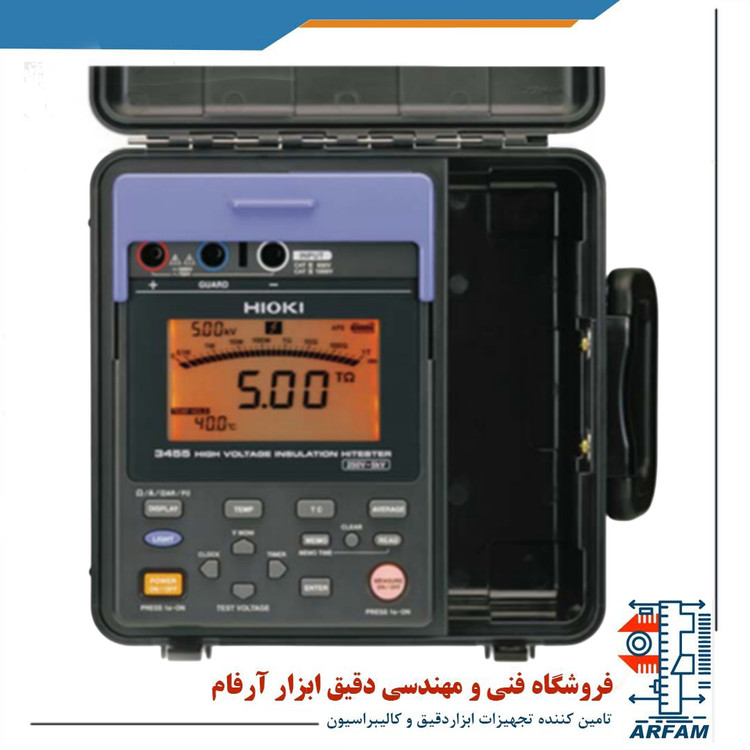 دستگاه تستر عایق ولتاژ بالای هایوکی مدل 3455 دستگاهی ایده آل برای اندازه گیری مقاومت عایق، جریان نشتی، ولتاژ و همچنین دما می باشد. یکی از ویژگی های دستگاه تبدیل نتایج به مقاومت عایق در دمای رفرنس (20 یا 40 درجه سلسیوس) است. این دستگاه قابلیت نمایش PI یا شاخص قطبی سازی و همچنین DAR با نسبت جذب دی الکتریک را دارد. این دستگاه قابلیت ذخیره تا 100 داده را دارد که فواصل این ثبت ها 15 و 30 ثانیه و همچنین 1 و 2 و 5 دقیقه است. محتوای داده های دستگاه که دستگاه توانایی ثبت آن ها را دارد عبارتند از تاریخ، ساعت، فواصل اندازه گیری، دما، ولتاژ، ولتاژ حقیقی خروجی×زمان، مقاومت×زمان. این محصول همچنین قابلیت تغییر به حالت نوشتاری و خواندنی، قابلیت پاک سازی تمامی داده ها، قابلیت پاک سازی انتخابی داده ها و همچنین جایگزین کردن داده ها بصورت ثبت داده های جدید روی داده های قدیمی را دارد. قابلیت های ارتباطی دستگاه از طریق USB ver 2.0 و نرم افزار کامپیوتر است. همچنین قابلیت های دیگر این محصول شامل نمایش زمان سپری شده، ساعت، میانگین، نگه داشتن داده ها، تخلیه الکتریکی خودکار، نمایش هشدار ولتاژ فعال، نمایشگر هشدار کنداکتور داغ، نور پس زمینه، خاموش شدن دستگاه بصورت خودکار و صدای هشدار اشاره کرد.