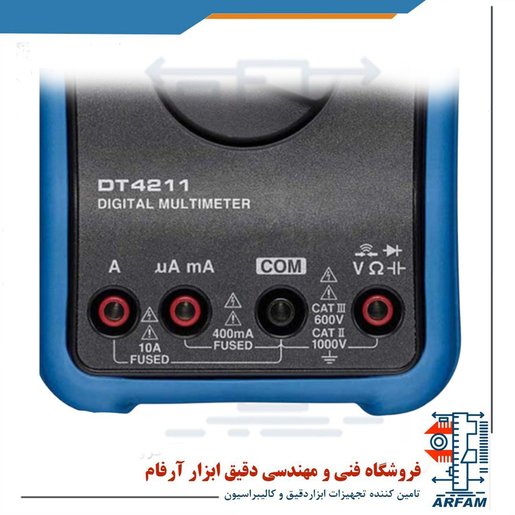 دستگاه مولتی متر دیجیتال مدل HIOKI DT-4211 دارای ویژگی هایی نظیر اندازه گیری ولتاژ AC/DC– جریان AC/DC -تست دیود و تست پیوستگی می باشد. این محصول در صنعت برق و مکان هایی که نیاز به ثبت آنلاین اطلاعات و تغییر وجود دارد، کاربرد دارد. دستگاه دارای lcd با نمایش 4000 داده می باشد و هر سه ثانیه بروز سرانی می گردد. این دستگاه می تواند ولتاژ DC را به میزان 400 میلی ولت تا 1000 ولت اندازه گیری کند. همچنین ولتاژ AC به میزان 400 میلی ولت تا 1000 ولت می باشد. جریان AC در این دستگاه به صورت 400 میکروامپر تا 10 امپر می باشد. جریان DC در این دستگاه به صورت 400 میکروامپر تا 10 امپر می باشد. این دستگاه می تواند مقاومت را در مقادیر 400 اهم تا 40 مگااهم اندازه گیری کند. محدوده خازن از 50 نانوفاراد تا 100 میکروفاراد می باشد. همچنین محدوده فرکانس از 5 هرتز تا 5 مگاهرتز می باشد. همچنین میزان تست دیود و تست پیوستگی دستگاه به ترتیب 1 ولت و 400 اهم می باشد. همچنین نمایش نتایج به صورت مقادیر نسبی می باشد. این ابزار قابلیت خاموش شدن خودکار دارد. همچنین این ابزار دارای فناوری ایمنی از نوع IP40 می باشد و دارای 1 سال گارانتی نیز می باشد.