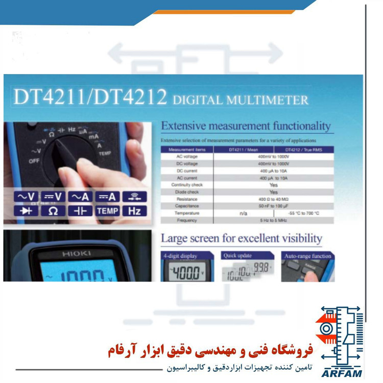 مشخصات فنی مولتی متر True RMS پرتابل . دماسنج 700 درجه هیوکی HIOKI DT4212 :