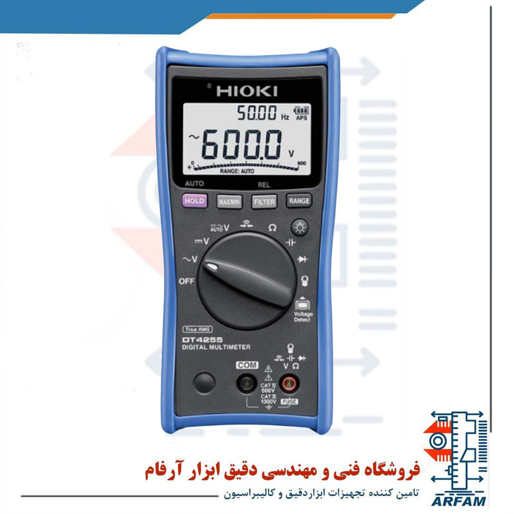 مولتی متر دستگاهی برای اندازهگیری جریان الکتریکی و ولتاژ است. مولتی متر دیجیتال هایوکی سری DT4200 دارای 9 مدل مختلف است و انواع مختلفی مانند مولتی مترهای صنعتی، حرفه ای و یا جیبی را شامل می شوند که پاسخ بسیار سریع وهمچنین ویژگی های امنیتی آن باعث شده است تا تستهای الکتریکی به سطحی بالاتر انتقال پیدا کنند. مولتی متر مدل DT4255 یک مدل دیجیتال از مولتی متر است که برای امنیت حداکثری به همراه ترمینال های اندازه گیری ولتاژ طراحی شده اند که توسط یک فیوز محافظت می شوند. بازه ولتاژ DC مولتی متر مدل DT4255 تا 1000 ولت است. بازه ولتاژ AC این مولتی متر نیز تا 1000 ولت است مشخصه های فرکانسی آن تا 1 کیلوهرتز می باشد. این محصول دارای ویژگی AC/DCV بصورت خودکار است. بازه مقاومت این مدل تا 60 مگا اهم می باشد. بازه جریان AC (با استفاده از کلمپ روی پروب ها) تا 1000 آمپر است. بازه گنجایشی این مولتی متر تا 10 می باشد. به دلیل فیلترهای موجود در این مولتی متر، این دستگاه هارمونی بالایی در زمان اندازه گیری از خود نشان می دهد. این محصول از ویژگی تشخیص ولتاژ بهره می برد. همچنین ویژگی دیگر این دستگاه توانایی انجام کار در بازه دمایی وسیعی از -25 درجه سلسیوس تا 65 درجه سلسیوس است.