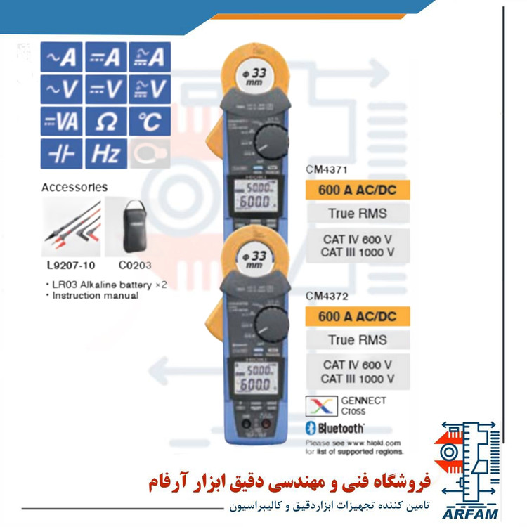 مشخصات فنی امپرمتر کلمپی 600 آمپر AC / DC با رزولوشن یک صدم هیوکی HIOKI CM4371 :