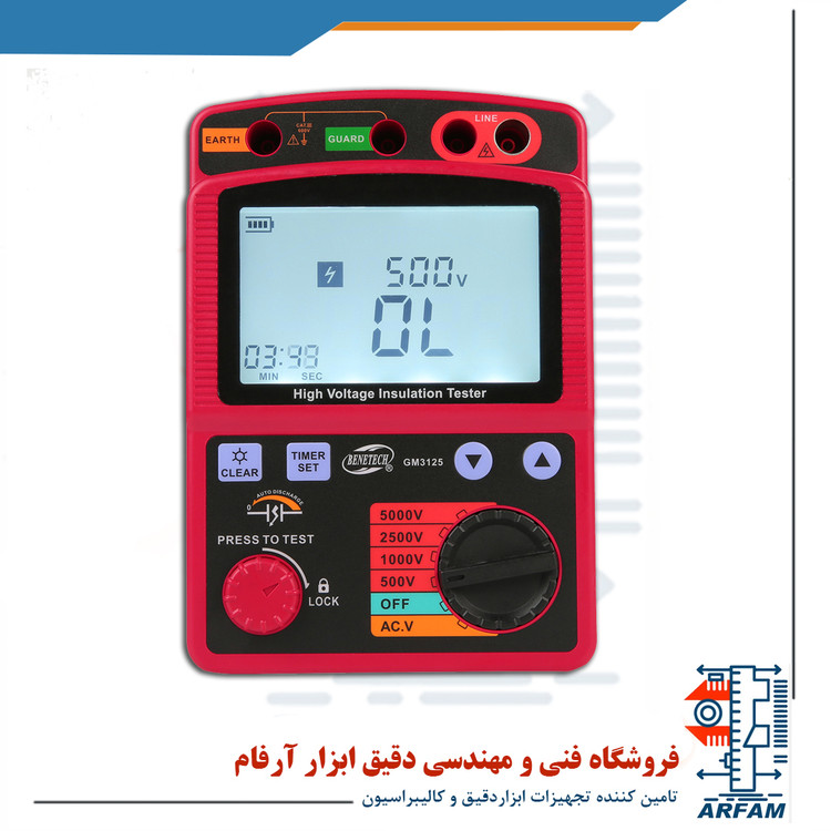 توانایی تنظیم ولتاژ در ۴ رنج: در محدوده های 500V/1000V/2500V/5000V