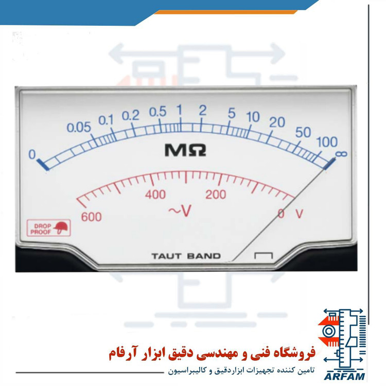0 تا 50 مگا اهم است. مقاومت محدوده پایین این دستگاه برابر با 0.5 مگا اهم (مقدار مقاومت اندازه گیری شده برای حفظ ولتاژ تست) می باشد. مراقبت اضافه بار این دستگاه برابر با 600 V AC (10 ثانیه) است. بازه ولتاژ AC این دستگاه بین 0 تا 600 ولت و در دامنه 50/60 هرتز می باشد که دقت آن برابر با +-5% از حداکثر دقت مقدار مقیاس است و مقاومت ورودی به مقدار 500 کیلو اهم یا بیشتر دارد.