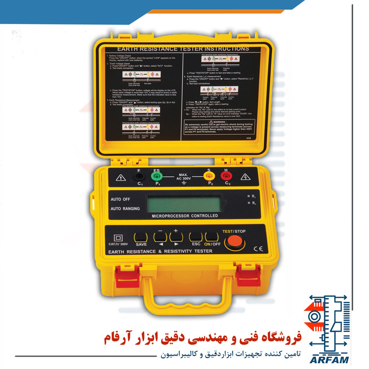 ارت سنج دیجیتال 4 پلیت برند SEW مدل 4235ER دستگاهی جهت اندازه گیری مقاومت زمین در نقاط مختلف و تست چاه های ارت موجود در منازل و کارخانه جات می باشد. این ارت سنج تا 2000 اهم اندازه گیری مقاومت را انجام داده و از قابلیت هایی نظیر ثبت و نمایش 200 نتیجه اندازه گیری شده و خاموش شدن بصورت اتوماتیک و…. نیز برخوردار است. تغذیه ارت تستر فوق توسط 8 عدد باتری 1.5 ولتی انجام می شود.