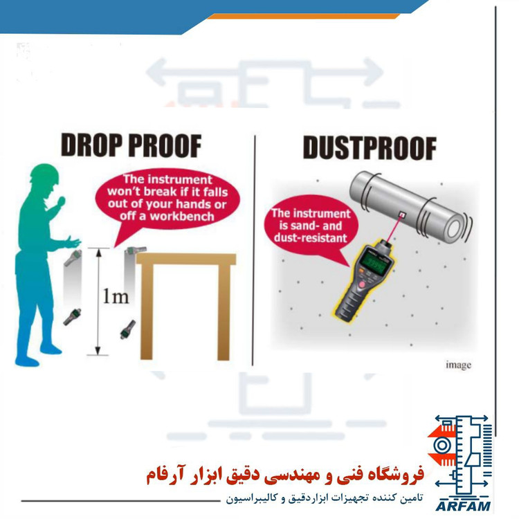 همچنین دیگر خصوصیات مربوط به رنج های سنجش تماسی با میانگین روشن بصورت زیر می باشند: سرعت مستقیم (متر بر دقیقه) برابر با (1.500 تا 19.999) تا (200.0 تا 1999.9) و همچنین سرعت مستقیم (متر بر ثانیه) برابر با (0.0250 تا 1.9999) تا (20.00 تا 33.30) می باشد. در این حالت استفاده از حلقه محیطی 9212 انتخابی است. دقت این دستگاه تا شمارش 9999 و در حالت میانگین روشن برابر با +-1dgt و در حالت میانگین خاموش برابر با +-10dgt می باشد. دقت این دستگاه از شماره 10000 و بالاتر در حالت میانگین روشن برابر با +-2dgt و در حالت میانگین خاموش برابر با +-20dgt می باشد. دقت این دستگاه از شماره 20000 یا بالاتر (فقط حالت (r/min) با میانگین روشن برابر با +-20dgt و در حالت میانگین خاموش برابر با +-100dgt است. اندازه گیری سرعت مستقیم هم برابر با +-0.5%rdg است که آن را به دقت های ذکر شده در بالا اضافه کنید. رنج تشخیص سنجش غیر تماسی این محصول بین 50mm (1.97 inch) تا 500 mm (19.7 inch) می باشد. میزان از نو فعال شدن صفحه نمایش تقریبا 0.5 تا 10 مرتبه در ثانیه است.. ویژگی ضد گرد و خاک و ضد آب بودن آن بر اساس IP50 (EN60529) می باشد.