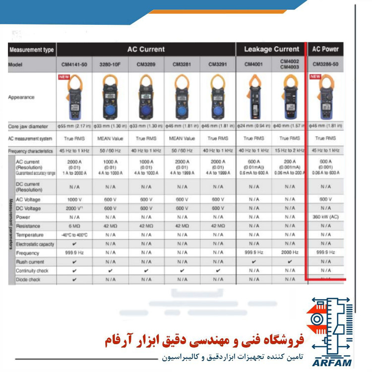 مشخصات فنی پاور متر کلمپی اصل ساخت ژاپن برند هیوکی HIOKI CM3286-50 :