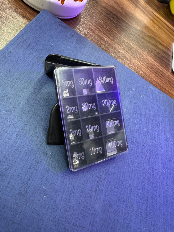جزییات وزنه : 1mg- 2mg- 2mg- 5mg- 10mg- 20mg- 20mg- 50mg- 100mg- 200mg- 200mg- 500 mg
