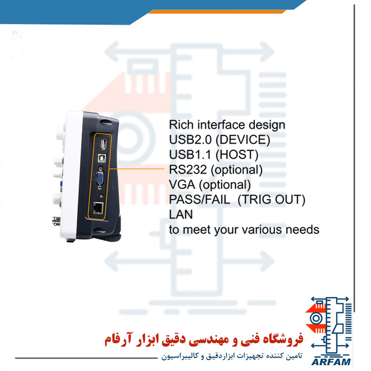 🔹 توابع پیشرفته: FFT، عملیات ریاضی (+ - × ÷)، اندازهگیری 23 پارامتر، عملکرد Pass/Fail، ذخیره و پخش شکل موجها