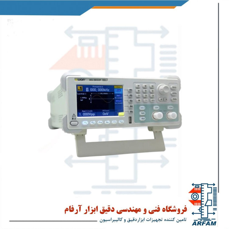 > مولتی فانکشن ژنراتور دو کاناله OWON مدل AG-2052F، با فرکانس خروجی تا ۵۰ مگاهرتز و نرخ نمونهبرداری ۲۵۰MS/s، یکی از پیشرفتهترین ژنراتورهای شکل موج در رده قیمتی خود است. این دستگاه قابلیت تولید امواج سینوسی، مربعی، مثلثی و دلخواه (Arbitrary) با رزولوشن ۱۴ بیت را دارد و از مدولاسیونهای AM، FM، PM، FSK، PWM، ASK، PSK، Burst و Sweep پشتیبانی میکند.