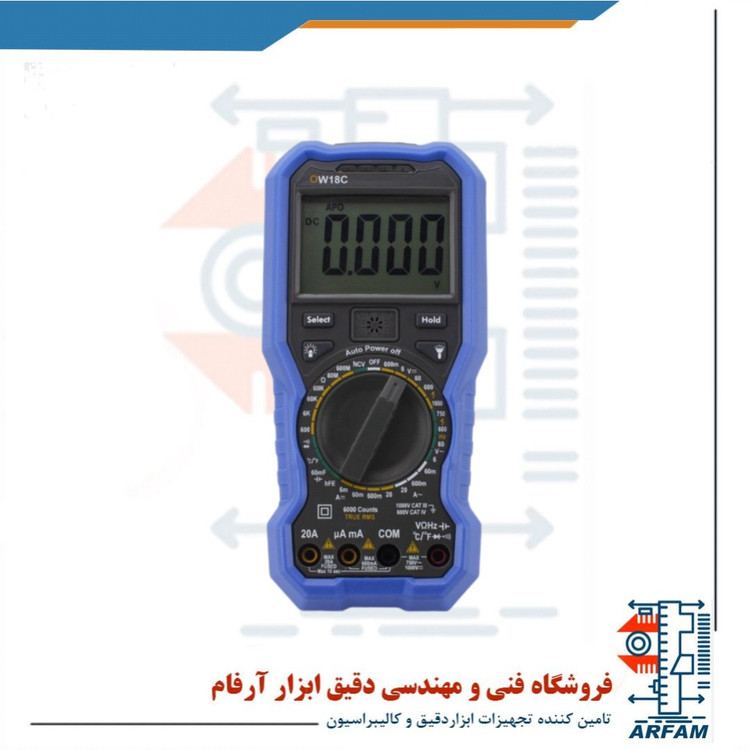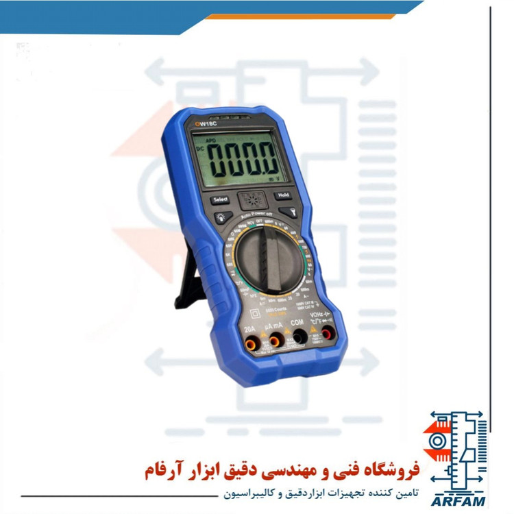 مولتیمتر دیجیتال OWON مدل OW18C یک دستگاه دقیق، مقاوم و چندمنظوره از سری حرفهای OW18 برند OWON است که با قابلیت نمایش تا 5999 شمارش و پشتیبانی از True RMS طراحی شده است. این مولتیمتر برای اندازهگیری پارامترهای مختلف الکتریکی مانند ولتاژ، جریان، مقاومت، ظرفیت خازن، فرکانس و دما با دقت بالا استفاده میشود.
