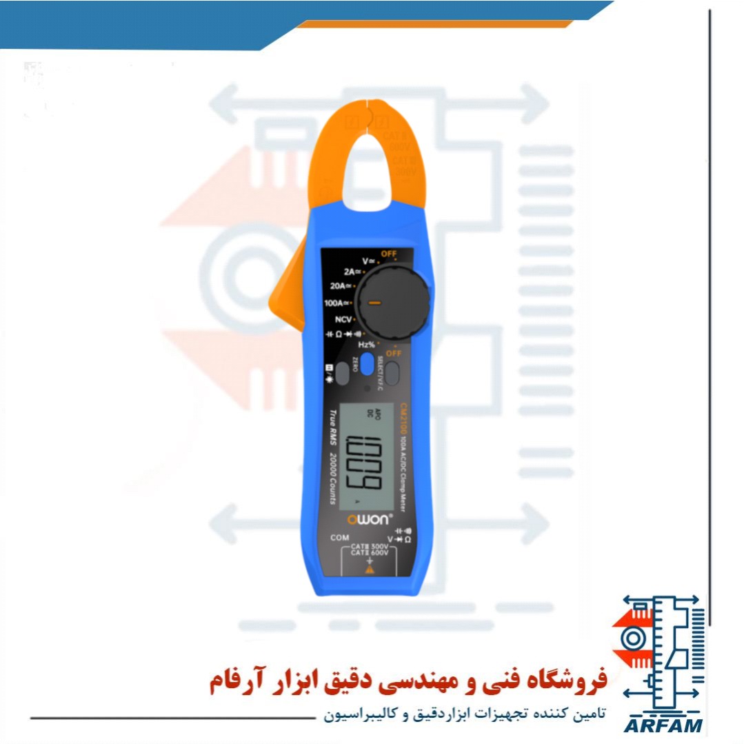 مولتیمتر مدل OWON CM2100 یک کلمپمولتیمتر جمعوجور و دقیق است که قابلیت اندازهگیری جریان و ولتاژ AC و DC را در خود دارد، همراه با امکاناتی مثل NCV (حسگر ولتاژ بدون تماس)، VFC (فیلتر تداخل فرکانس بالا)، و اندازهگیری خازن، مقاومت، دیود، فرکانس و Duty Cycle . نسخه پیشرفتهتر یعنی CM2100B، علاوه بر این موارد، امکاناتی مثل بلوتوث، ضبط خودکار دادهها و ارسال صوتی نتایج را ارائه میدهد .