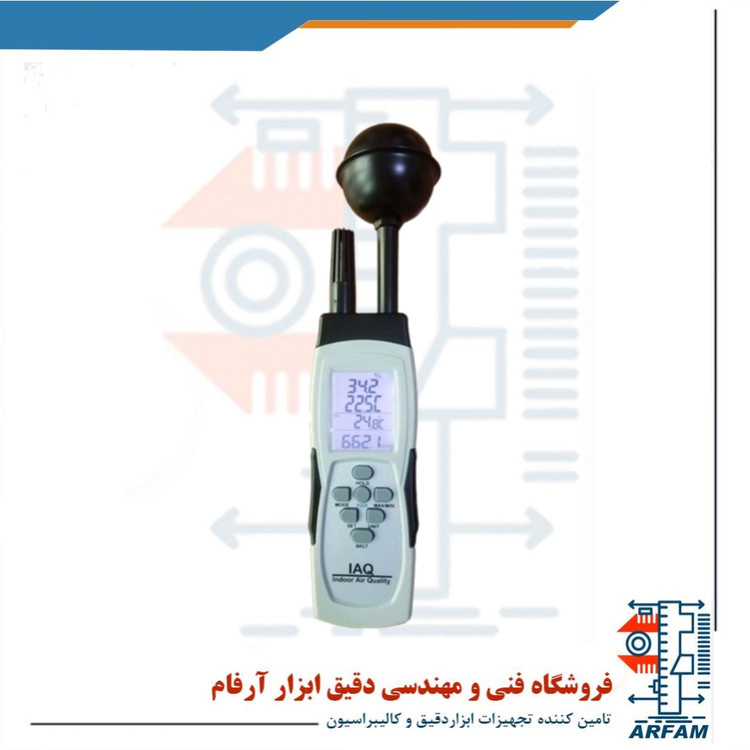 اندازهگیری همزمان چند پارامتر کلیدی: شامل دمای محیط (Dry Bulb)، دمای کره سیاه (Globe Temperature)، رطوبت نسبی، دمای تر و نقطه شبنم