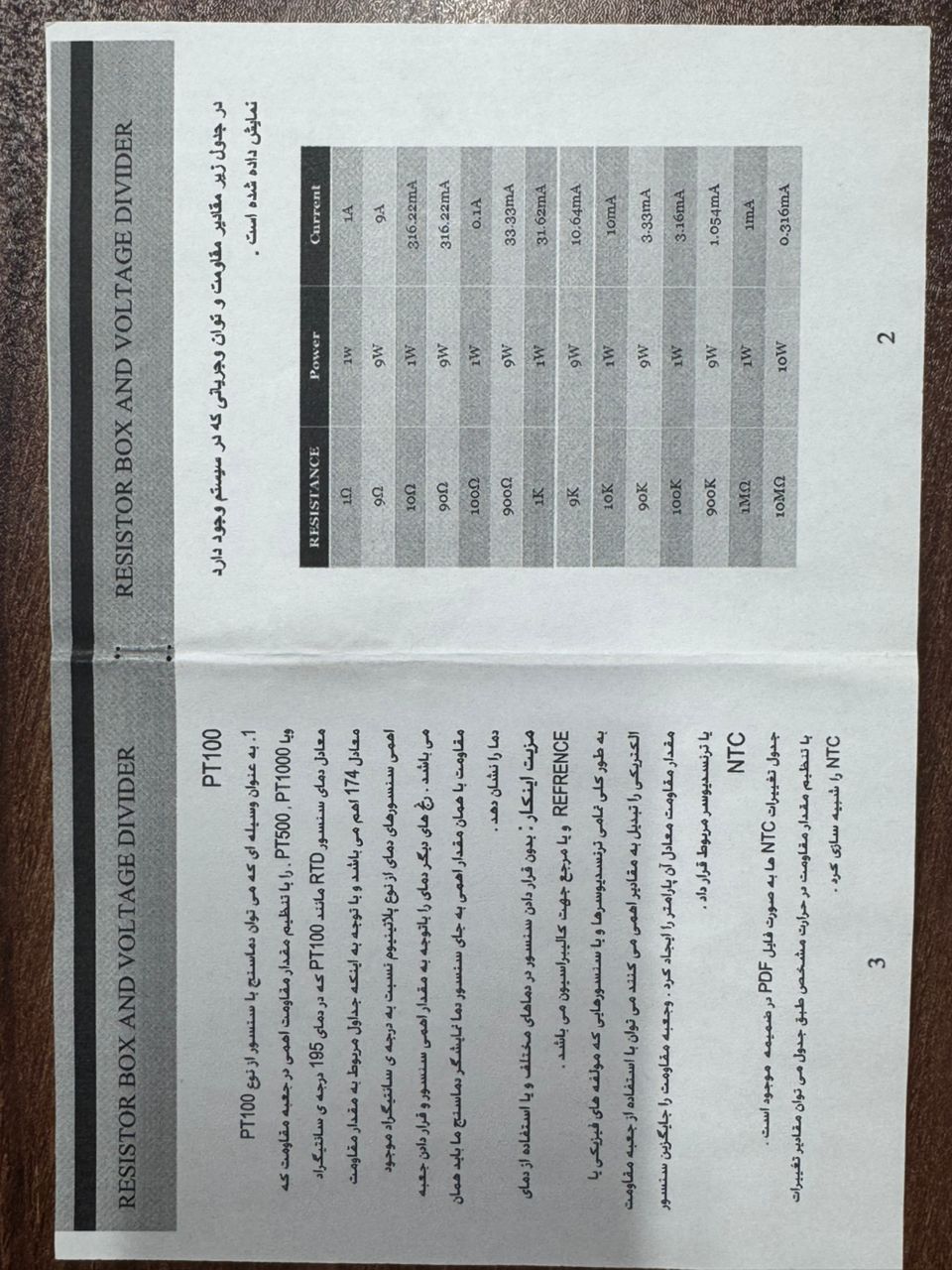 برای شبیهسازی سنسورهای دما از نوع NTC نیز میتوان از این جعبه مقاومت استفاده کرد. کافی است جدول مربوط به سنسور NTC موردنظر را مطالعه کرده و مقاومت متناظر هر دما را روی دستگاه تنظیم نمود.
