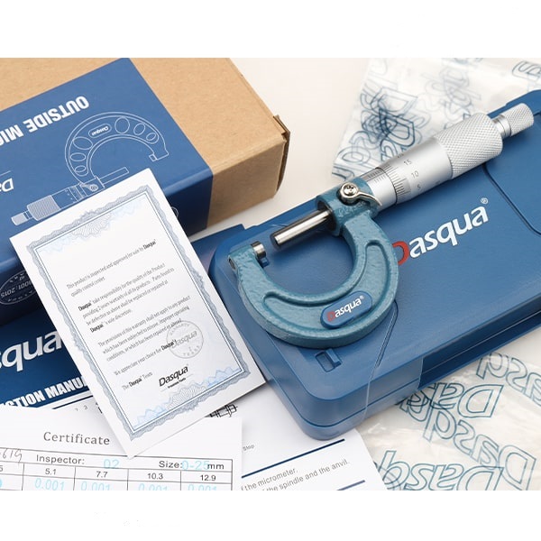 میکرومتر داسکوا 25-0 میلی متر خارج سنج مدل 8105-4111 Dasqua Outside Micrometer 4111-8105 مشخصات محصول میکرومتر خارجسنج 25-0 میلیمتر DASQUA تحت لیسانس ایتالیا برای اندازهگیری دقیق قطر، ضخامت و ابعاد خارجی قطعات مختلف فک متحرک (Spindle) استیل ضدزنگ با رزوههای سختکاری شده بهکارگیری از کاربید مخصوص و جدید بر روی سطح فک اندازهگیری درجهبندی لیزری حک شده روی سطح کروم مات برای خوانایی بهتر استاپر جغجغهای با نیرو 5-8 نیوتن، %20 دقیقتر از استاندارد رایج سیستم قفل فک برای حفظ تنظیمات اندازهگیری در شرایط حساس مقاوم در برابر نیروی بیش از حد، جلوگیری از آسیب به فک متحرک طول کلی ابزار 134 میلیمتر و عمق کارگیر فریم برابر با 30 میلیمتر گواهی DIN 863 آلمان + ضمانت اصالت کالا + تضمین کالیبراسیون