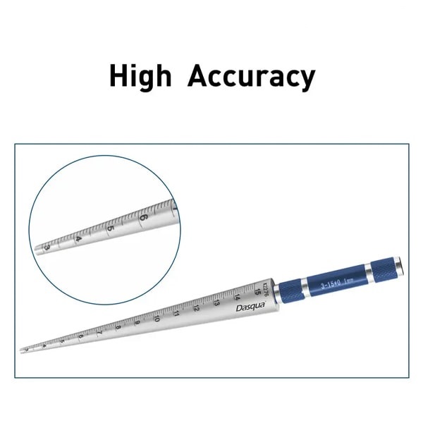 مشخصات محصول گپ سنج (تیپر گیج) مخروطی داسکوا مدل 0008-1051 Dasqua Taper Bore Gauge 1051-0008 لوازم حرفه ای و تخصصی اندازه گیری کلاس جهانی برند داسکوا گیج تیپر و گپ سنج مخروطی استنلس استیل تحت لیسانس ایتالیا کاربردی برای سنجش قطر داخلی قطعات عمیق و دسترسی سخت مناسب برای اندازه گیری قطر لوله، شلنگ، نی، استوانه، سیلندر و... ظرفیت تست سایز 3 تا 15 میلی متر با دقت گام 0.1 میلی متر روکش کروم ساتن براق جهت خوانش راحت اعداد در هر زاویه ارگونومیک و سبک وزن با دسته فلزی مشبک و ضد لغزش دست طبق استاندارد اروپا و تضمین کالیبراسیون، اصالت و سلامت ابزار