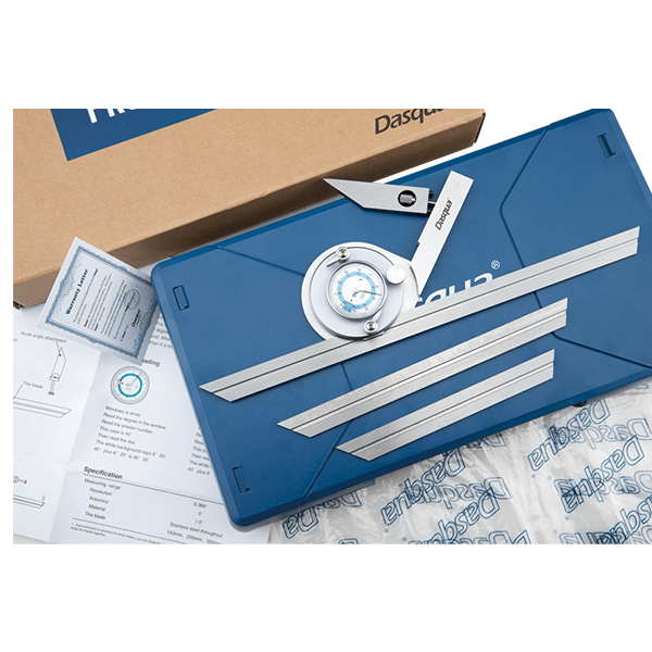 مشخصات محصول زاویه سنج ساعتی DASQUA تحت لیسانس کشور ایتالیا ساخت از فولاد ضدزنگ مقاوم برابر خوردگی و زنگ زدگی تنظیم دقیق زوایا در صنایع قالب سازی و کنترل کیفیت با صفحه ساعتی دقیق برای خوانش سریع و آسان زوایا سطح اندازه گیری سخت کاری، سنگ زنی و لپ کار شده تقسیم بندی و دقت صفحه نمایش 5 دقیقه قوسی روکش ساتن کروم به جهت دوام بیشتر و خوانایی بالا با سه تیغه در سایز های 150، 200 و 300 میلی متر ضمانت اصالت و سلامت همراه گواهی کالیبراسیون
