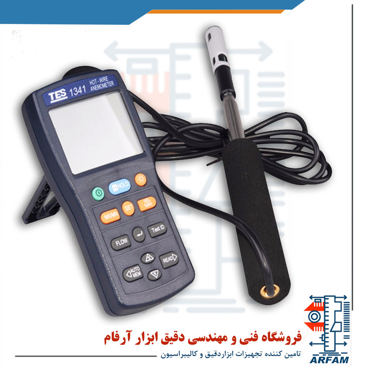 دبی سنج هات وایر مدل tes-1341 بادسنجی جهت اندازه گیری سرعت ، دبی حجمی ، دما و رطوبت نسبی هوا, نقطه شبنمDEW POINTو نقطه تریWET BULB FUNCTION می باشد. بادسنج حرارتي مدل TES-1341دارای قابلیت اتصال به کامپیوترو ثبت داده ها تا 20000 مورد می باشد.
