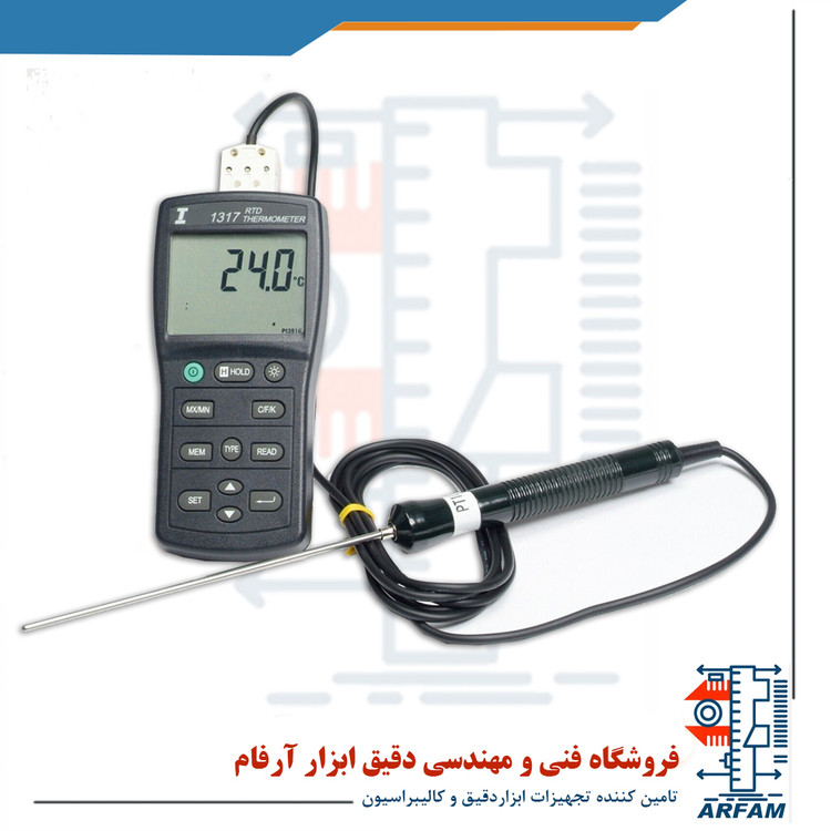 ترمومتر PT100 تس مدل TES-1317 جهت اندازه گیری دما به وسیله سنسور RTD و با استانداردهای PT385، PT3916 و PT3926 مورد استفاده قرار میگیرد. همچنین دارای صفحه نمایشگری است که توانایی نمایش داده ها را با دو یکای سانتیگراد و فارنهایت دارا است. صفحه نمایشگر این دماسنج برای استفاده در فضاهای کم نور، دارای نور پس زمینه است. این ترمومتر توانایی نمایش مقادیر ماکزیمم، مینیمم و میانگین اندازه گیری شده را دارد. همچنین کاربر میتواند برای سهولت در خواندن اطلاعات در این دماسنج، از کلید HOLD جهت ثابت نگه داشتن اطلاعات استفاده کند. کاربر میتواند برای حرارت سنج PT100 تس مدل TES-1317 هشدار حد بالا و حد پایین تعریف کند تا در صورت عبور از این حدود، به او اطلاع دهد.