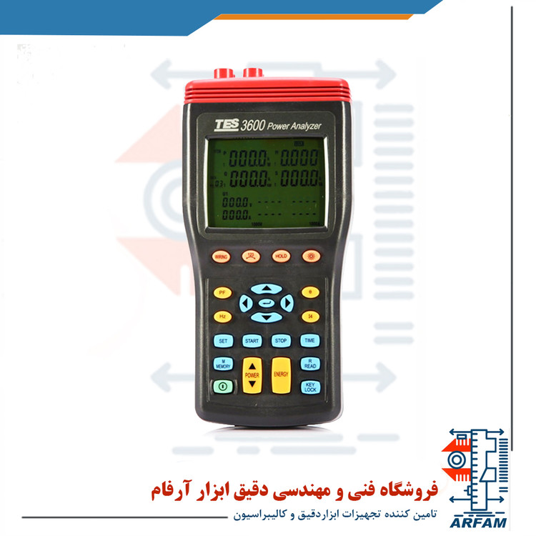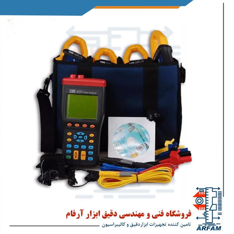پاور آنالایزر سه فاز و تک فاز TES-3600 بهمراه 4 کلمپ 1000A قابلیت اندازه گیری پارامترهای توان برای سیستم های تک فاز ( دو سیم و سه سیمه) و سه فاز ( 3 سیمه یا 4 سیمه) را دارد. اندازه گیری ولتاژ و جریان پاورمتر کلمپی TES-3600، AC و True RMS میباشد. ماکزیمم توان اکتیو ( راکتیو) قابل اندازه گیری توسط آنالیزور توان سه فاز TES-3600 برابر با 600KW(KVAR) است. تحلیل گر توان قدرت TES-3600 دارای حافظه 512KB یا امکان ذخیره 20000 مورد داده است. این دیتالاگر جریان بدین صورت عمل میکند که با مشخص کردن زمان شروع و پایان ثبت و فاصله زمانی بین دو مورد بصورت اتوماتیک، اطلاعات را در حافظه دستگاه ذخیره و سپس توسط کابل USB به کامپیوتر انتقال می دهد. از دیگر ویژگی های این دیتالاگر و آنالایزر توان، اندازه گیری انرژی ( KWh، KVARh و KVAh )، ضریب توان یا PF ، زاویه فاز و فرکانس می باشد. همچنین نمایش همزمان 10 پارامتر بروی نمایشگر دستگاه، نمایش توالی فاز از قابلیت های دستگاه، و نمایش شکل موج جریان و ولتاژ بهراه تحلیل هارمونیکی از قابلیت های نرم افزار پاور آنلایزر TES-3600 میباشد.