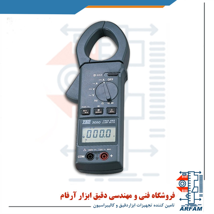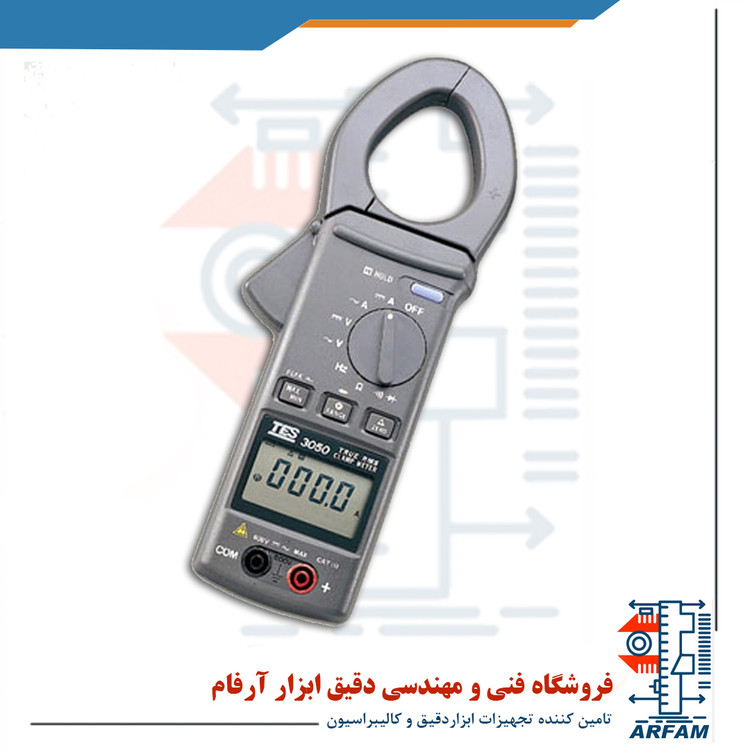 آمپر متر کلمپی تس مدل TES 3050, دارای صفحه نمایشگر بزرگ و گرافیکی است و مناسب برای استفاده های آموزشی و آزمایشگاهی میباشد. قابلیت اندازه گیری ولتاژ ، جریان ، مقاومت و فرکانس را دارا می باشد.از ویژگی های دیگر آن می توان به نمایش MIN/MAX و DATA HOLD اشاره کرد. با استفاده از آمپر متر کلمپی جهت اندازه گیری جریان، دیگر نیازی به قطع کردن سیم حامل جریان نمی باشد. فقط کافیست سیم حامل جریان را بین دو فک کلمپ قرار داده و با بسته شدن فک های کلمپ جریان عبوری از سیم حامل جریان را مشاهده نمایید. این دستگاه ها با استفاده از اثر هال جریان را اندازه گیری می کنند. حساسیت و دقت بالا از نکات مثبت این کلمپ ها می باشد.