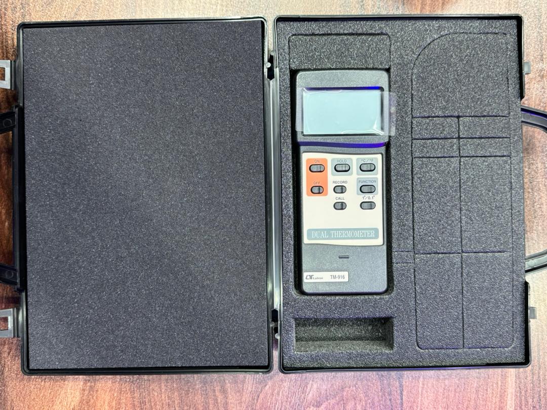دستگاه Lutron TM‑916 Dual Thermometer از برند Lutron، یک ترمومتر دارای دو کانال ورودی پراب نوع K است که برای اندازهگیری دما در بازه بسیار وسیع طراحی شده و مناسب کاربردهای صنعتی، آزمایشگاهی و سرویس است. در ادامه توضیح کامل و فنی بههمراه نکات کاربردی آمده است.