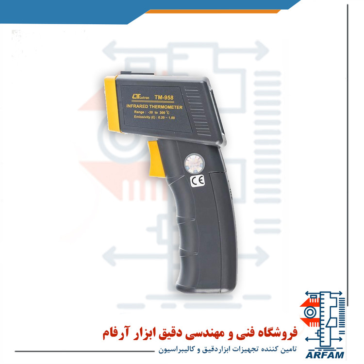 ترمومتر لیزری لوترون LUTRON TM-958 دماسنج غیرتماسی و پیشرفته است که برای اندازه گیری دما با دقت بالا با استفاد ه از نوآوری بکار گیری اشعه مادون قرمزو در دامنه های وسیع از 30- تا 300 درجه سانتی گراد کاربرد فراوان دارد. ترمومتر فوق دستگاهی توانایی عملکرد چند گانه ازجمله قابلیت نگه داشتن داده ها ،خاموش کردن دستگاه و نورپس زمینه بطور خودکاروتنظیم میزان انتشار اشعه را دارد . رزولوشن دستگاه 0.5 درجه فارنهایت و سانتی گراد است. در این دستگاه از یک مدار میکرو کامپیوتری برای سرعت بخشیدن به عملیات محاسباتی و افزایش دقت آنها استفاده شده است.پیش فرض ضریب انتشار امواج 0.95 و دامنه انتشار آنها بین 0.2 تا 1.00. می باشد. استفاده این دستگاه بسیار ساده و عملیات آن با فشار یک دکمه شروع می شود.