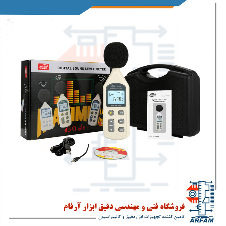 محدوده اندازه گیری صوت: صوت A از 30 تا 130 دسیبل و صوت C از 35 تا 130 دسیبل