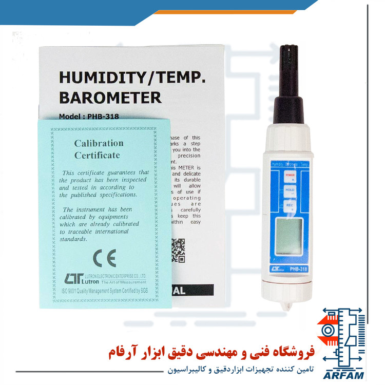 مشخصات کلی بارومتر و رطوبت سنج قلمی لترون LUTRON PHB-318 :