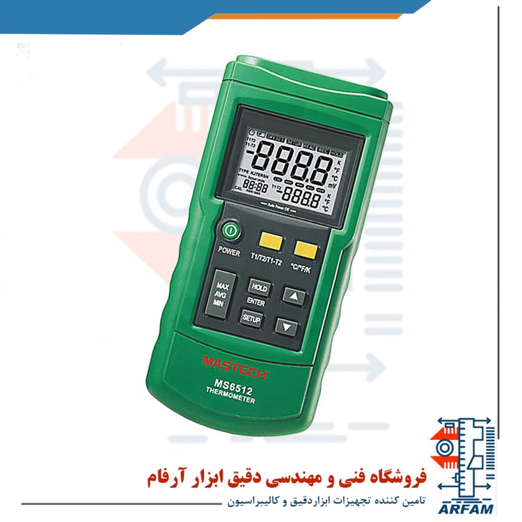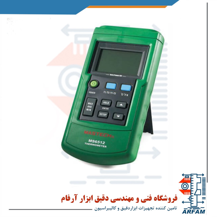 ترمومتر دو کاناله مدل MS6512 مستک متشکل از یک ترموکوپل به همراه ریز پردازنده به عنوان سنسور دما می باشد. این ابزار برای ترموکوپل های مختلف مانندK ،J ،T وE کاملا ایده آل است. از این ابزار میتوان در صنایع غذا و دارو، پالایشگاه های نفتی، پتروشیمی، ساخت شیشه، سیمان، صنعت پزشکی، گیاهان دارویی و تست ایمنی دستگاه های گرمایشی بهره برد